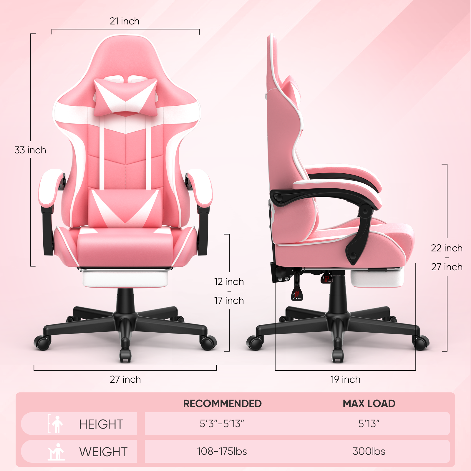 - 【High Quality Materials】 Wasait pink gaming chair is made of high quality PU leather, the surface breathable design, sitting for a long time without stuffy. Seat cushion high resilience sponge design, good resilience, not easy to deformation soft collapse.