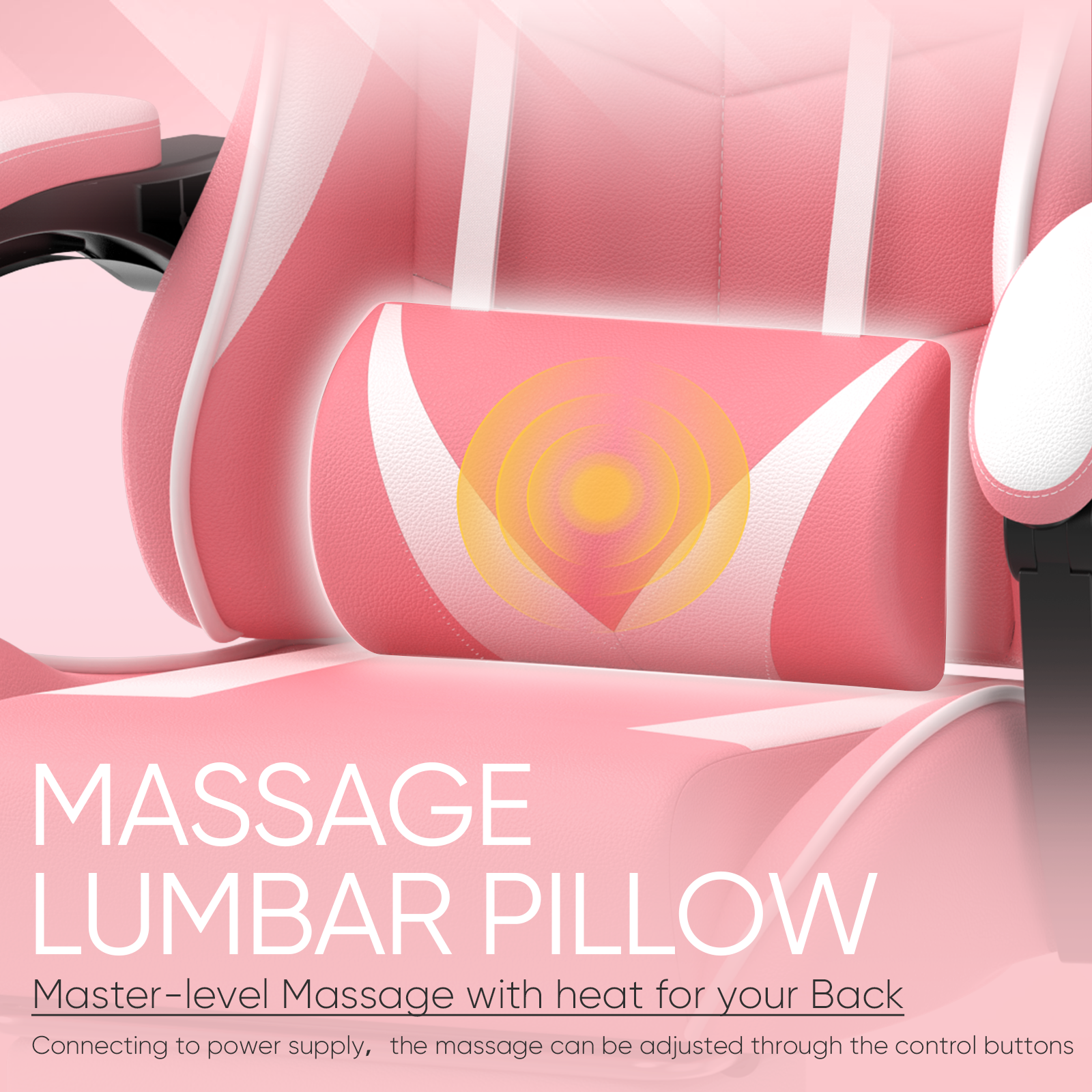 Wasait Gaming Chair with Footrest Adjustable Height Office Chair Ergonomic Computer Chair with Massage Lumbar Support Bunny Ears Video Gamer Chair for Adults,Pink